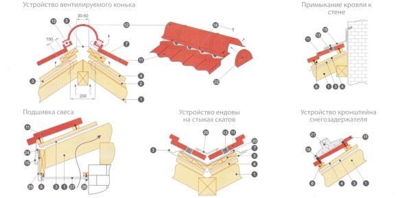 Основные элементы монтажа кровли: