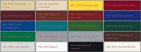 Наша Компания производит профнастил и кровельно-фасад-ные материалы из стали с полимерным покрытием широкой цветовой гаммы. Основная часть продукции изготавливается из стали с полимерным покрытием (полиэстер) производства ОАО «НЛМК» (цветовая гамма по стандарту RAL-Classic). Стандарт RAL Classic содержит 210 цветов (без металликов - 194). Данный стандарт самый распространенный в мире и применятся уже более чем 75 лет во всех странах мира для промышленных, текстильных, автомобильных, фасадных и порошковых красок. В нашей стране данный стандарт также признан как эталон цвета в лакокрасочной промышленности. Каждый цвет имеет четырехзначный номер. Просим учесть, что указанный в таблице цвет совпадает со стандартом RAL приблизительно, т.к. восприятие цвета на экране монитора зависит от установок цветовой палитры, яркости и контрастности, других факторов. Вы можете ознакомиться с образцами цветов стали с полимерным покрытием у нас на складе.